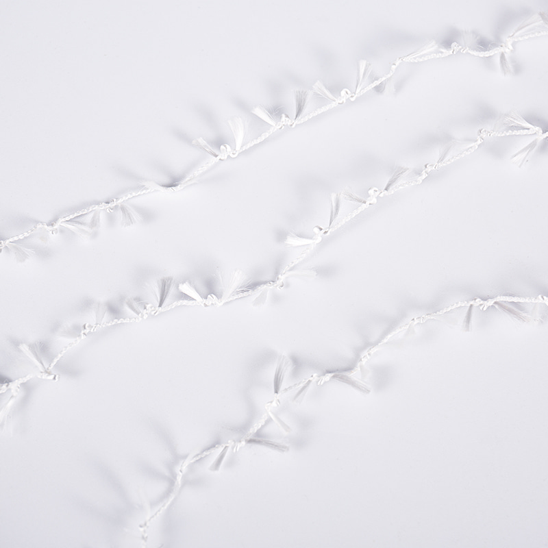 স্কার্ফ সোয়েটার বুননের জন্য আলংকারিক প্রজাপতি সুতা সুতার মধ্যে সূক্ষ্ম প্রজাপতি নিদর্শনগুলিকে সূক্ষ্মভাবে অন্তর্ভুক্ত করে। বিশেষ প্রক্রিয়াকরণের মাধ্যমে, প্রজাপতির আকৃতিটি প্রাণবন্ত এবং একটি শক্তিশালী ত্রিমাত্রিক অনুভূতি রয়েছে, যা ফ্যাব্রিকে একটি স্তরযুক্ত চাক্ষুষ প্রভাব নিয়ে আসে। স্কার্ফ সোয়েটার বুননের জন্য আলংকারিক বাটারফ্লাই সুতা 100% পলিয়েস্টার দিয়ে তৈরি। পলিয়েস্টার কাপড়ের উচ্চ স্থিতিস্থাপক পুনরুদ্ধার এবং মাত্রিক স্থিতিশীলতা রয়েছে এবং এটি সহজে কুঁচকে যায় না, যা স্কার্ফ এবং সোয়েটারগুলি পরা এবং ধোয়ার পরে দ্রুত তাদের আসল আকার পুনরুদ্ধার করতে দেয়, ইস্ত্রি করার ঝামেলা হ্রাস করে। পলিয়েস্টার ফাইবারের চমৎকার ইউভি প্রতিরোধ ক্ষমতা রয়েছে, তাই পলিয়েস্টার সুতা দিয়ে তৈরি স্কার্ফ এবং সোয়েটারগুলি বিবর্ণ হওয়া সহজ নয় এবং তারা দীর্ঘ সময়ের জন্য সূর্যের সংস্পর্শে থাকলেও উজ্জ্বল রঙ বজায় রাখতে পারে। স্কার্ফ সোয়েটার বুননের জন্য আলংকারিক প্রজাপতি সুতা একটি স্কার্ফ বুনতে প্রজাপতি সুতার অনন্য সৌন্দর্য ব্যবহার করে যা উষ্ণ এবং ফ্যাশনেবল উভয়ই, আপনাকে ফোকাস করে তোলে তা প্রতিদিনের ভ্রমণ হোক বা ডেটিং পার্টি হোক।
