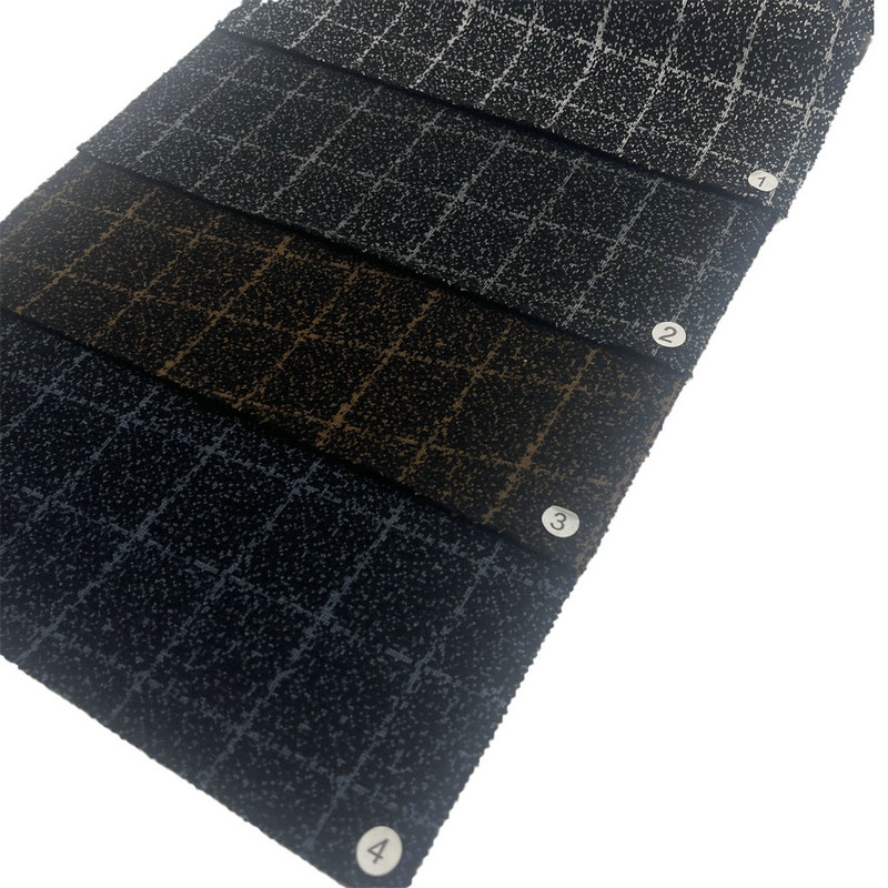এই ফ্যাব্রিক, আর্টিকেল 182808-1, একটি নিট টেক্সটাইল যা ব্লেজার তৈরির জন্য ডিজাইন করা হয়েছে। এটি 65% পলিয়েস্টার, 27% নাইলন, 6% এক্রাইলিক এবং 2% উলের ফাইবার মিশ্রণ থেকে তৈরি করা হয়েছে, যার ভর প্রতি ইউনিট 820g/m। পৃষ্ঠ বুনন প্রক্রিয়ার সময় গঠিত একটি সম্মিলিত প্লেড এবং বিন্দু প্যাটার্ন সংহত করে। এই নির্দিষ্ট ফাইবার সংমিশ্রণ পরিপূরক বৈশিষ্ট্য তৈরি করে: পলিয়েস্টার কাঠামোগত স্থিতিশীলতা প্রদান করে, নাইলন স্থায়িত্ব বাড়ায়, এক্রাইলিক মাচায় অবদান রাখে এবং উল ফ্যাব্রিকের হাতের অনুভূতিকে প্রভাবিত করে। যথেষ্ট ওজন এবং বুনা নির্মাণ ফ্যাব্রিকের ড্রেপ এবং নিরোধক বৈশিষ্ট্যে অবদান রাখে, এটিকে ব্লেজারের মতো কাঠামোগত পোশাকের জন্য প্রযোজ্য করে তোলে।