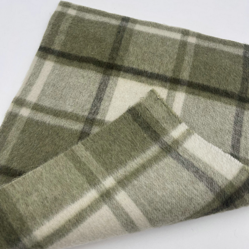 এই ফ্যাব্রিক, আর্টিকেল ZZH25001 হিসাবে মনোনীত, একটি পুরু বোনা টেক্সটাইল যা 30% উল এবং 70% অন্যান্য ফাইবার দ্বারা গঠিত। প্রতি ইউনিট ক্ষেত্রফল 900g/m এর ভর সহ, উপাদানটি যথেষ্ট ঘনত্ব এবং ওজন প্রদর্শন করে। বিশেষ বুনন কৌশলের মাধ্যমে তৈরি ছায়া প্রভাব সহ পৃষ্ঠে একটি সবুজ প্লেড প্যাটার্ন রয়েছে। এই নির্মাণ পদ্ধতি গ্রিড গঠনের মধ্যে স্তরযুক্ত ভিজ্যুয়াল গভীরতা তৈরি করে। মিশ্রণে উলের তন্তুর অন্তর্ভুক্তি ফ্যাব্রিকের তাপ নিয়ন্ত্রণ বৈশিষ্ট্যকে প্রভাবিত করে। এই প্রযুক্তিগত বৈশিষ্ট্যগুলির ফলস্বরূপ একটি হেভিওয়েট বোনা ফ্যাব্রিক গঠন করা পোশাকের জন্য উপযুক্ত যেখানে উচ্চারিত টেক্সচার এবং যথেষ্ট উপস্থিতি প্রয়োজন৷