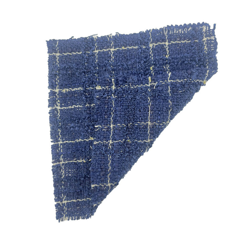 এই ফ্যাব্রিক, নিবন্ধ 19909-10 হিসাবে মনোনীত, মহিলাদের পোশাকের জন্য ডিজাইন করা একটি 100% পলিয়েস্টার টুইড। প্রতি ইউনিট ক্ষেত্রফল 558g/m এর ভর সহ, এটি একটি মাঝারি-ওজন গঠন উপস্থাপন করে। গাঢ় নীল বেসটি একটি প্লেইড প্যাটার্ন দিয়ে বোনা হয়, যা উত্পাদন প্রক্রিয়ার সময় ধাতব সুতার সাথে একত্রিত হয়। এই সংমিশ্রণটি চাক্ষুষ এবং স্পর্শকাতর বৈশিষ্ট্য উভয়ের মধ্যে একটি বৈসাদৃশ্য তৈরি করে। অল-পলিয়েস্টার রচনাটি মাত্রিক স্থিতিশীলতা এবং সামঞ্জস্যপূর্ণ কর্মক্ষমতা নিশ্চিত করে। ধাতব উপাদানের অন্তর্ভুক্তি টেক্সটাইল পৃষ্ঠের আলো-প্রতিফলিত বিবরণ যোগ করে। এই বৈশিষ্ট্যগুলি ফ্যাব্রিককে পোশাকের জন্য উপযুক্ত করে তোলে যেখানে কাঠামোগত অখণ্ডতা এবং আলংকারিক প্রভাবকে অগ্রাধিকার দেওয়া হয়৷