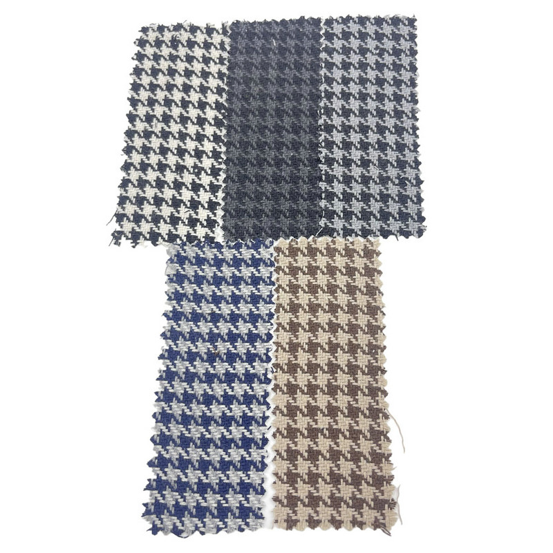 এই ফ্যাব্রিক, আর্টিকেল 3946 হিসাবে মনোনীত, একটি বোনা টেক্সটাইল যা 10% উল এবং 90% অন্যান্য ফাইবার দ্বারা গঠিত। প্রতি ইউনিট এলাকা 450 গ্রাম/মি এর ভর সহ, এটি একটি মাঝারি-ওজন নির্মাণ উপস্থাপন করে। গাঢ় ধূসর পৃষ্ঠে একটি হাউন্ডস্টুথ প্যাটার্ন রয়েছে, যা একটি নির্দিষ্ট বুনন কৌশলের মাধ্যমে তৈরি করা হয়েছে যা ভাঙা চেক বা চার-পয়েন্টেড আকার তৈরি করে। এই ক্লাসিক জ্যামিতিক মোটিফটি এর পুনরাবৃত্তি বিপরীত টোনাল প্রভাব দ্বারা চিহ্নিত করা হয়। উলের মিশ্রণের গঠন ফ্যাব্রিকের তাপ নিয়ন্ত্রণ এবং স্থিতিস্থাপকতায় অবদান রাখে। এই প্রযুক্তিগত বৈশিষ্ট্যগুলির ফলে সংজ্ঞায়িত প্যাটার্ন আর্টিকেলেশন এবং কাঠামোগত স্থায়িত্ব সহ একটি উপাদান তৈরি হয়, যা এটি হুডিগুলির জন্য প্রযোজ্য করে যেখানে ভিজ্যুয়াল প্যাটার্ন সংজ্ঞা এবং দীর্ঘমেয়াদী কর্মক্ষমতা প্রয়োজন৷