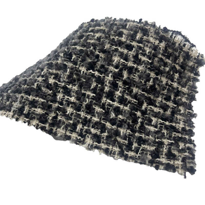 আর্টিকেল 23515 হিসাবে মনোনীত এই ফ্যাব্রিকটি 77% পলিয়েস্টার, 14% তুলা, 4% উল, 4% এক্রাইলিক এবং 1% নাইলন দ্বারা গঠিত একটি টুইড টেক্সটাইল। প্রতি ইউনিট ক্ষেত্রফল 420 জিএসএম সহ, এটি একটি মাঝারি-ওজন নির্মাণ উপস্থাপন করে। পৃষ্ঠটি লুপ সুতার কাঠামোর সাথে একত্রিত একটি এমবসড প্যাটার্ন বৈশিষ্ট্যযুক্ত, একটি টেক্সচার্ড স্পর্শকাতর প্রভাব তৈরি করে। মাল্টি-ফাইবার মিশ্রণ পলিয়েস্টারের স্থায়িত্ব, তুলার আর্দ্রতা শোষণ, উলের প্রাকৃতিক চরিত্র, এক্রাইলিকের মাচা এবং নাইলনের শক্তিবৃদ্ধিকে একীভূত করে। এই সংমিশ্রণের ফলে পৃষ্ঠের মাত্রা এবং কাঠামোগত অখণ্ডতা সহ একটি ফ্যাব্রিক তৈরি হয়। এই বৈশিষ্ট্যগুলি চাক্ষুষ টেক্সচার এবং কার্যকরী স্থায়িত্ব উভয়েরই প্রয়োজন এমন পোশাকের জন্য প্রযোজ্য করে৷