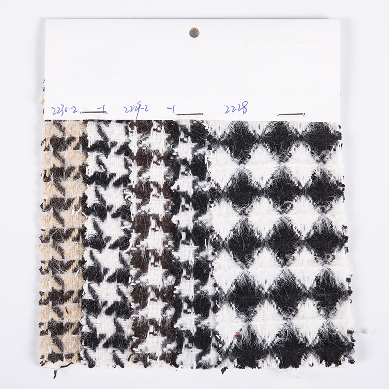 লং হেয়ার ডায়মন্ড হাউন্ডস্টুথ টুইড ফ্যাব্রিক 2230/2229/2228 এর স্বতন্ত্র বৈশিষ্ট্য হল অনন্য লম্বা চুল প্রক্রিয়াকরণ প্রযুক্তি, যা একটি প্যাচওয়ার্ক এবং স্তরযুক্ত ভিজ্যুয়াল ইফেক্ট তৈরি করতে ক্লাসিক ডায়মন্ড আকৃতি এবং হাউন্ডস্টুথ প্যাটার্নকে একত্রিত করে। এই উদ্ভাবনী নকশা শুধুমাত্র ফ্যাব্রিককে উচ্চ মাত্রার স্বীকৃতিই দেয় না, বরং একই রকম অনেক পণ্যের মধ্যে এটিকে আলাদা করে তোলে। উপাদান গঠনের দৃষ্টিকোণ থেকে, ফ্যাব্রিকটি 100% রাসায়নিক ফাইবার কাঁচামাল দিয়ে তৈরি, এটি নিশ্চিত করে যে এটির চমৎকার শারীরিক বৈশিষ্ট্য এবং রাসায়নিক স্থিতিশীলতা রয়েছে। রাসায়নিক ফাইবার উপাদান, এর ভাল পরিধান প্রতিরোধের, বলি প্রতিরোধ এবং সহজ যত্ন সহ, এই ফ্যাব্রিকটিকে দীর্ঘমেয়াদী ব্যবহারের সময় তার খাস্তা আকৃতি এবং উজ্জ্বল রঙ বজায় রাখতে দেয়। একই সময়ে, রাসায়নিক তন্তুগুলির হাইগ্রোস্কোপিসিটি, শ্বাস-প্রশ্বাস এবং অন্যান্য সূচকগুলিও পরিধান করার সময় একটি আরামদায়ক অভিজ্ঞতা নিশ্চিত করতে কঠোরভাবে নিয়ন্ত্রণ করা হয়। লম্বা উলের হীরার হাউন্ডস্টুথ টুইডের কারুকাজও প্রশংসনীয়। উন্নত টেক্সটাইল প্রযুক্তি এবং সরঞ্জাম ব্যবহার ফ্যাব্রিক একটি রুক্ষ টেক্সচার বজায় রাখার পাশাপাশি একটি সূক্ষ্ম স্পর্শ থাকার অনুমতি দেয়। ওয়ার্প এবং ওয়েফ্ট সুতাগুলি শক্তভাবে এবং সমানভাবে সংযুক্ত থাকে, যা ফ্যাব্রিকের শক্তি এবং স্থিতিশীলতা নিশ্চিত করে। প্রয়োগ ক্ষেত্রের ক্ষেত্রে, লম্বা চুলের ডায়মন্ড হাউন্ডস্টুথ টুইড ফ্যাব্রিক তার অনন্য ডিজাইন এবং চমৎকার কার্যকারিতার কারণে হাউট কউচার ফ্যাশন, মার্জিত স্যুট এবং বিভিন্ন আলংকারিক কাপড়ে ব্যাপকভাবে ব্যবহৃত হয়।3