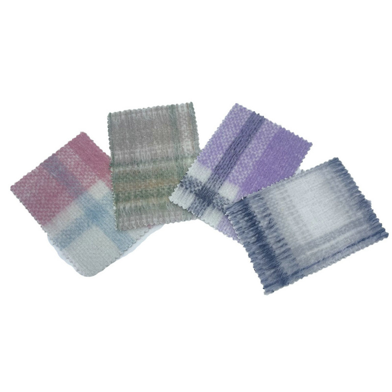 এই ফ্যাব্রিক, আর্টিকেল 3940 হিসাবে মনোনীত, 10% উল এবং 90% অন্যান্য ফাইবার দ্বারা গঠিত একটি জ্যাকার্ড টেক্সটাইল। প্রতি ইউনিট ক্ষেত্রফল 600 গ্রাম/মি সহ, এটি একটি ভারী ওজনের নির্মাণ উপস্থাপন করে। বেগুনি পৃষ্ঠটি একটি দীর্ঘ গাদা টেক্সচারের সাথে একটি প্লেইড প্যাটার্নকে একত্রিত করে, যা বিশেষ জ্যাকার্ড বুনন এবং সমাপ্তি কৌশলগুলির মাধ্যমে অর্জন করা হয়। এই উত্পাদন প্রক্রিয়াটি ফ্যাব্রিক পৃষ্ঠে বর্ধিত ফাইবার লুপ তৈরি করে, যার ফলে একটি উচ্চারিত ত্রিমাত্রিক গঠন হয়। উলের মিশ্রণের গঠন ফ্যাব্রিকের তাপ নিরোধক বৈশিষ্ট্য এবং স্থিতিস্থাপকতায় অবদান রাখে। এই প্রযুক্তিগত বৈশিষ্ট্যগুলি যথেষ্ট গভীরতা এবং পৃষ্ঠের ভলিউম সহ একটি উপাদান তৈরি করে, এটি ওভারকোটগুলির জন্য প্রযোজ্য করে যেখানে উন্নত উষ্ণতা এবং টেক্সচারাল মাত্রা প্রয়োজন৷