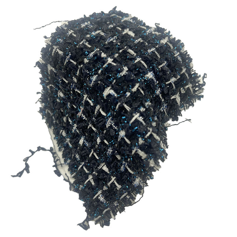 এই ফ্যাব্রিক, আর্টিকেল 23511 হিসাবে মনোনীত, একটি চেক টুইড টেক্সটাইল যা 86% পলিয়েস্টার এবং 14% নাইলন দ্বারা গঠিত। প্রতি ইউনিট ক্ষেত্রফল 340 জিএসএম সহ, এটি একটি লাইটওয়েট নির্মাণ উপস্থাপন করে। গাঢ় নীল বেস চেক প্যাটার্নের মধ্যে একটি নীল ধাতব সুতা অন্তর্ভুক্ত করে, বিভিন্ন আলোর প্রতিফলনের মাধ্যমে একটি বিপরীত দৃশ্যের প্রভাব তৈরি করে। পলিয়েস্টার-নাইলন মিশ্রণ মাত্রিক স্থিতিশীলতা এবং কাঠামোগত সামঞ্জস্য প্রদান করে। ধাতব উপাদানের অন্তর্ভুক্তি বোনা পৃষ্ঠে হালকা-ইন্টারেক্টিভ বৈশিষ্ট্য যোগ করে। এই প্রযুক্তিগত বৈশিষ্ট্যগুলি এই টুইড ফ্যাব্রিকটিকে মহিলাদের পোশাকের জন্য প্রযোজ্য করে তোলে যেখানে সংজ্ঞায়িত প্যাটার্নের উচ্চারণ এবং সূক্ষ্ম পৃষ্ঠের ভিন্নতা প্রয়োজন৷