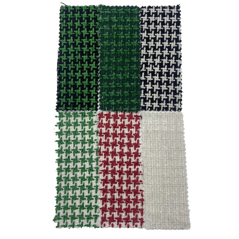 এই ফ্যাব্রিক, আর্টিকেল 2410 হিসাবে মনোনীত, 100% অন্যান্য ফাইবার দ্বারা গঠিত একটি জ্যাকার্ড টেক্সটাইল। প্রতি ইউনিট এলাকা 550 গ্রাম/মি ভর সহ, এটি একটি ভারী ওজনের নির্মাণ উপস্থাপন করে। পৃষ্ঠটি একটি এমবসিং কৌশলের সাথে ধাতব সুতাকে একত্রিত করে, একটি উত্থিত প্যাটার্ন তৈরি করে যা চাক্ষুষ এবং স্পর্শকাতর বৈশিষ্ট্য উভয়কেই পরিবর্তন করে। Jacquard বয়ন প্রক্রিয়া নকশায় ধাতব উপাদানগুলির সুনির্দিষ্ট একীকরণের অনুমতি দেয়। এই উত্পাদন পদ্ধতির ফলে সংজ্ঞায়িত টেক্সচার এবং হালকা-প্রতিফলিত গুণাবলী সহ একটি ফ্যাব্রিক তৈরি হয়। নির্দিষ্ট ওজন উপাদান এর স্থায়িত্ব এবং কাঠামোগত অখণ্ডতা অবদান. এই প্রযুক্তিগত বৈশিষ্ট্যগুলি এই জ্যাকোয়ার্ড ফ্যাব্রিকটিকে খেলনা তৈরির জন্য প্রযোজ্য করে তোলে যেখানে চাক্ষুষ আগ্রহ এবং উপাদান স্থিতিস্থাপকতা প্রয়োজন৷